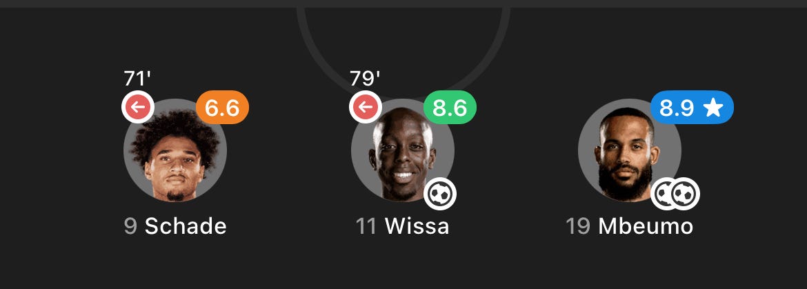 The way Schade moves reminds me of Leroy Sane the way they can drift past opponents with ease. That being said, in order to do this consistently, Schade must adapt to the physicality of the EPL. He is only 21, so there is not a huge rush with regards to his development.